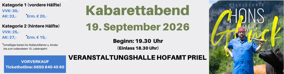 Das Adventzkonzert mit den Grubertalern in der Stocksport- und Veranstaltungshalle des USV Hofamt Priel wurde bereits coronabedingt abgesagt bzw. verschoben. Nun kommt es zu einer neuerlichen Terminverschiebung. Neuer Termin ist der 11. Dezember 2021! Die Karten behalten selbstverständlich ihre Gültigkeit. Genauere Infos dazu erhalten Sie unter der Telefonnummer 0650 840…